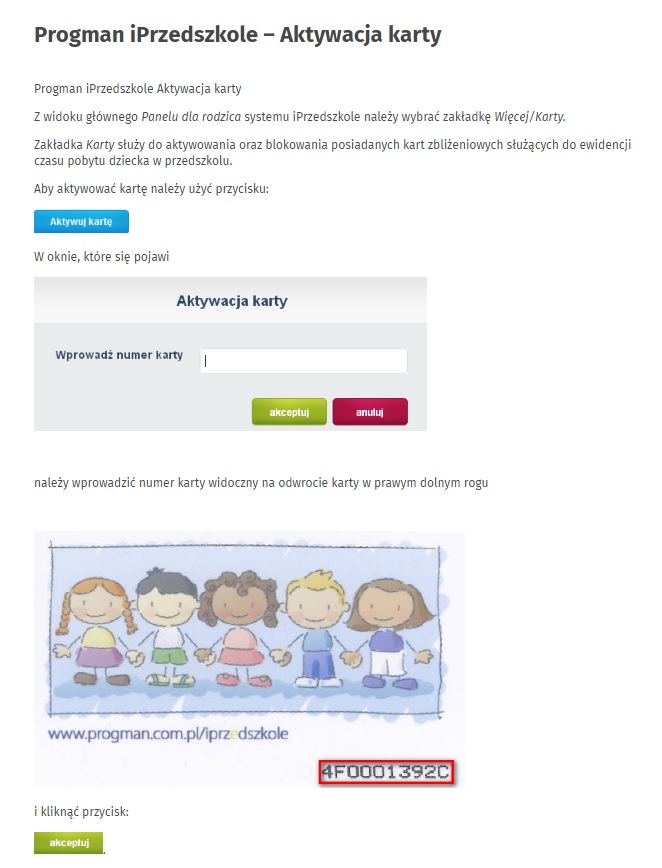 – Karty należy aktywować za pośrednictwem indywidualnego konta na stronie www.iprzedszkole.progman.pl